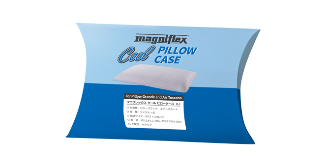 マニフレックス社の冷感素材<マニクール 3D ファブリック>を側地表面に採用。接触冷感効果で入眠時に心地よい冷たさを感じ、熱伝導効果によりその冷感が持続、さらに肌離れの瞬間に素早く熱を発散するので、寝返りのたびに冷たさを感じることができます。 『ピローグランデ』、『エアトスカーナ』用のLサイズ、『フラットピッコロ』や『レディースタイプ』、『レギュラータイプ』にも使えるMサイズ、『ピローサンパウロ』用のSサイズの3種で展開です。