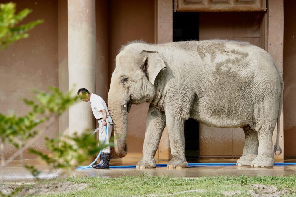 アジアゾウのワルダーさんは53歳。夕方、飼育員さんとゆっくりした時間を過ごしていました。