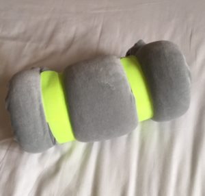 せめて枕はいつものをとサンパウロを持っていきました。本来はトラベルロールと言うカバーがあるのですが今品切れのため百均で購入したベルトで巻いて持っていきました。