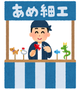 私が小さい時 楽しみにしていたのは 大道芸はもちろんですが、中でも、飴細工・七味唐辛子売りの口上・チンドン屋です。