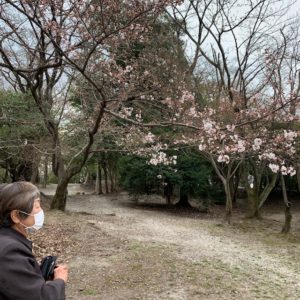 「そろそろ🌸咲いたかなーっと思って。」と言いながら、もう片方の手でバッグの中をゴソゴソ・・・