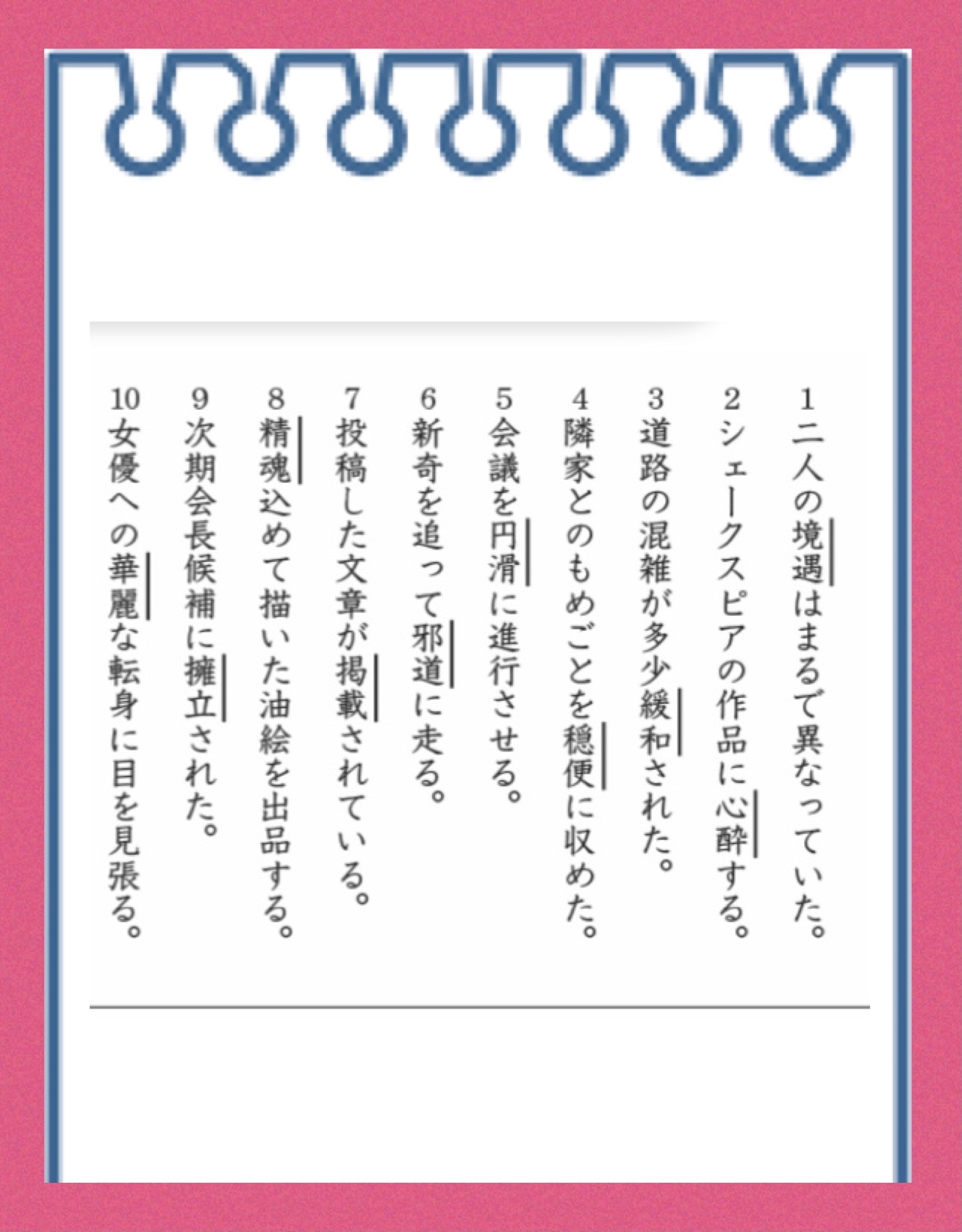 最近の出来事でもうひとつ覚えているのは、新聞か雑誌の間違い探しなどがあるコーナーで漢字のよみがなを答える簡単な問題です。空きスペースにスラスラとひらがなで答えを書きました^_^