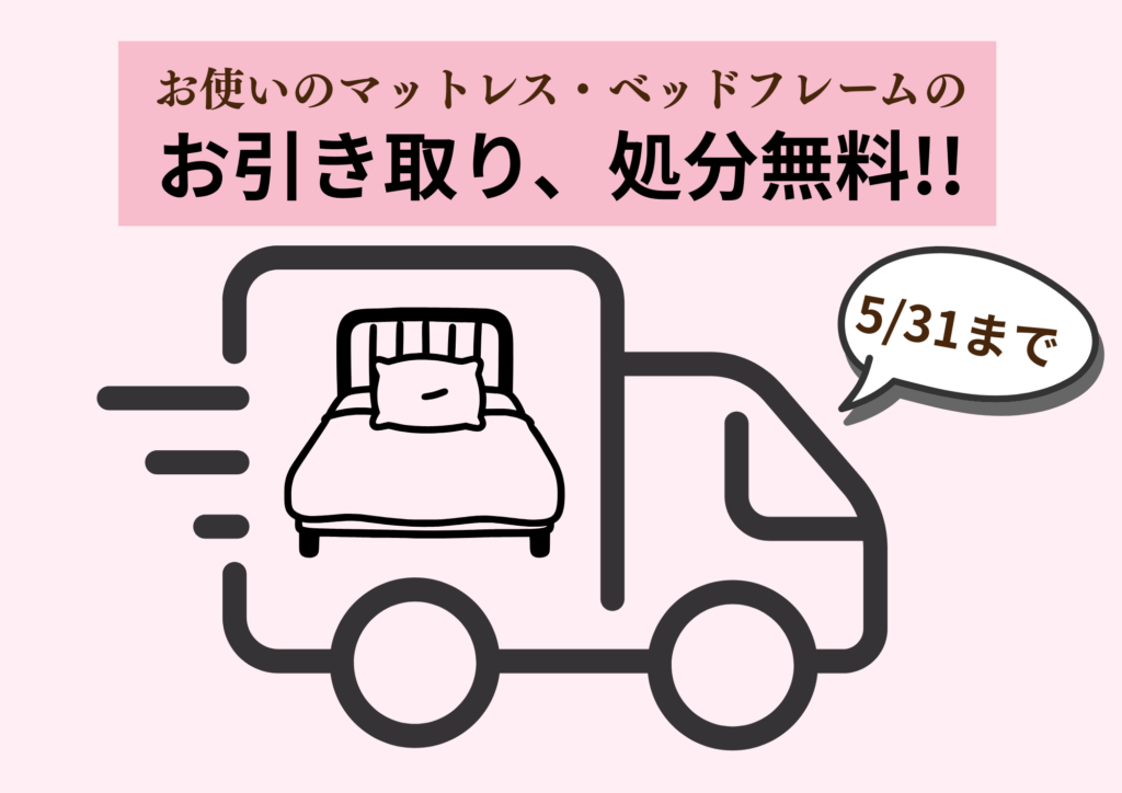❶古いマットレス・ベッドフレーム『お引取り・処分料金 無料サービス‼』(マットレスとベッド同時購入の方・地域など条件あり)