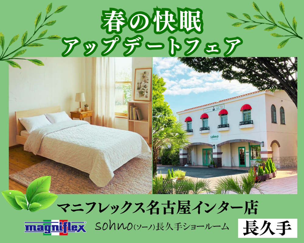 春の快眠アップデートフェア マニフレックス名古屋インター店(ソーノ長久手)